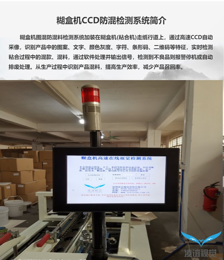 在包裝盒糊粘過程中出現(xiàn)混料、混款、印刷缺陷的問題是通過糊盒機(jī)加裝視覺檢測系統(tǒng)對表面圖文字符比對、條形碼/二維碼識別,色塊識別等方式實(shí)現(xiàn)防混及漏印檢測。
